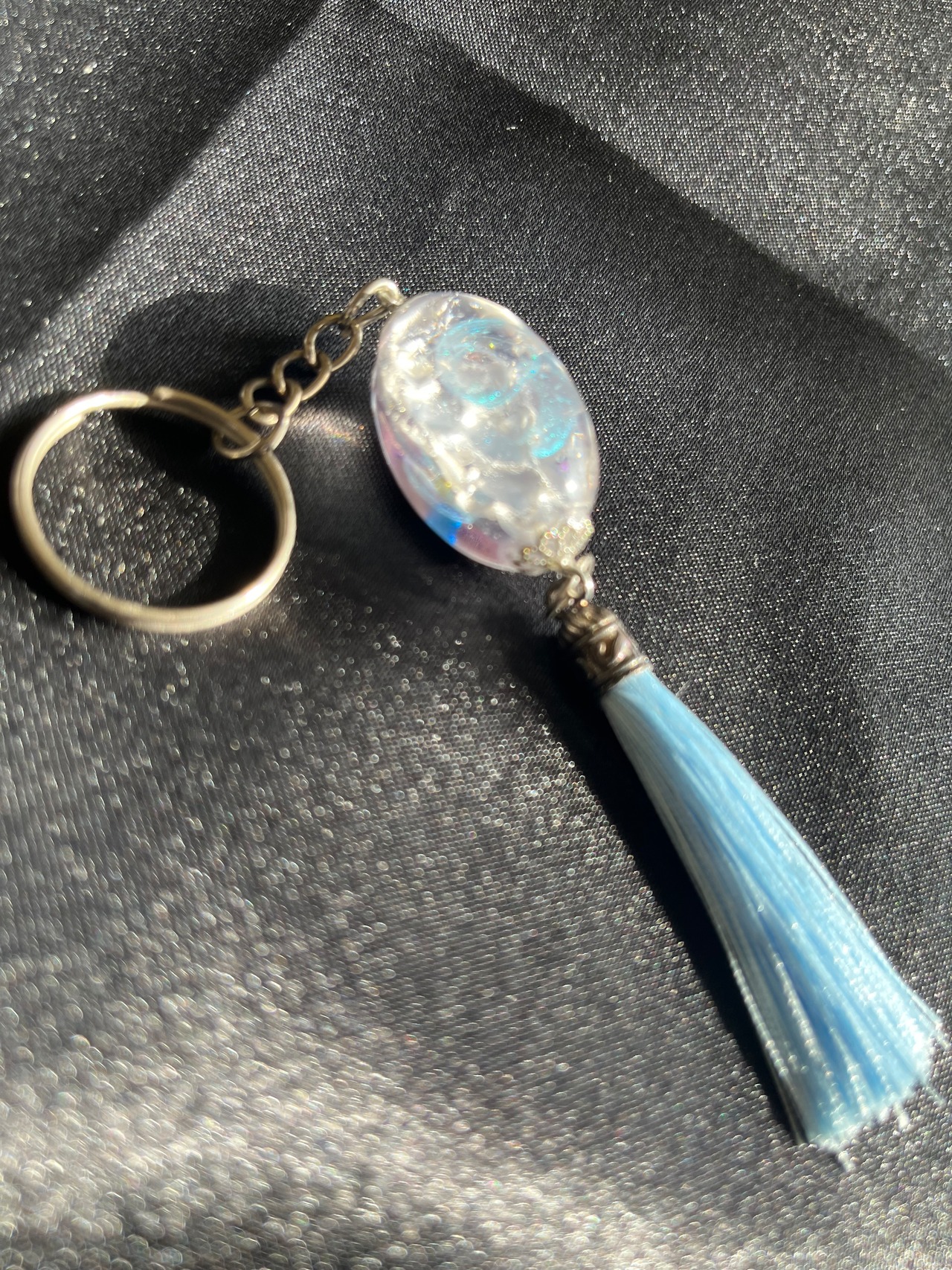 立体オーバルのタッセルキーホルダーです